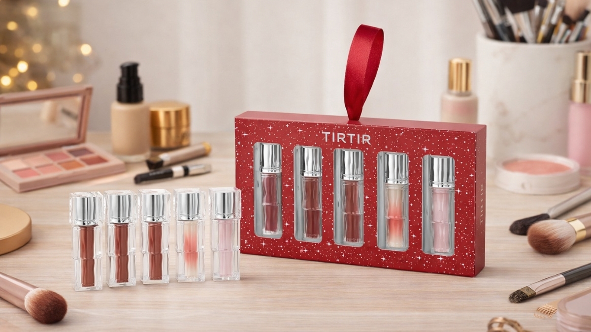 The TIRTIR Holiday Lip Stain Gift Set features five mini lip stains in a festive box. The packaging looks polished and seasonal. No extra wrapping is needed.
